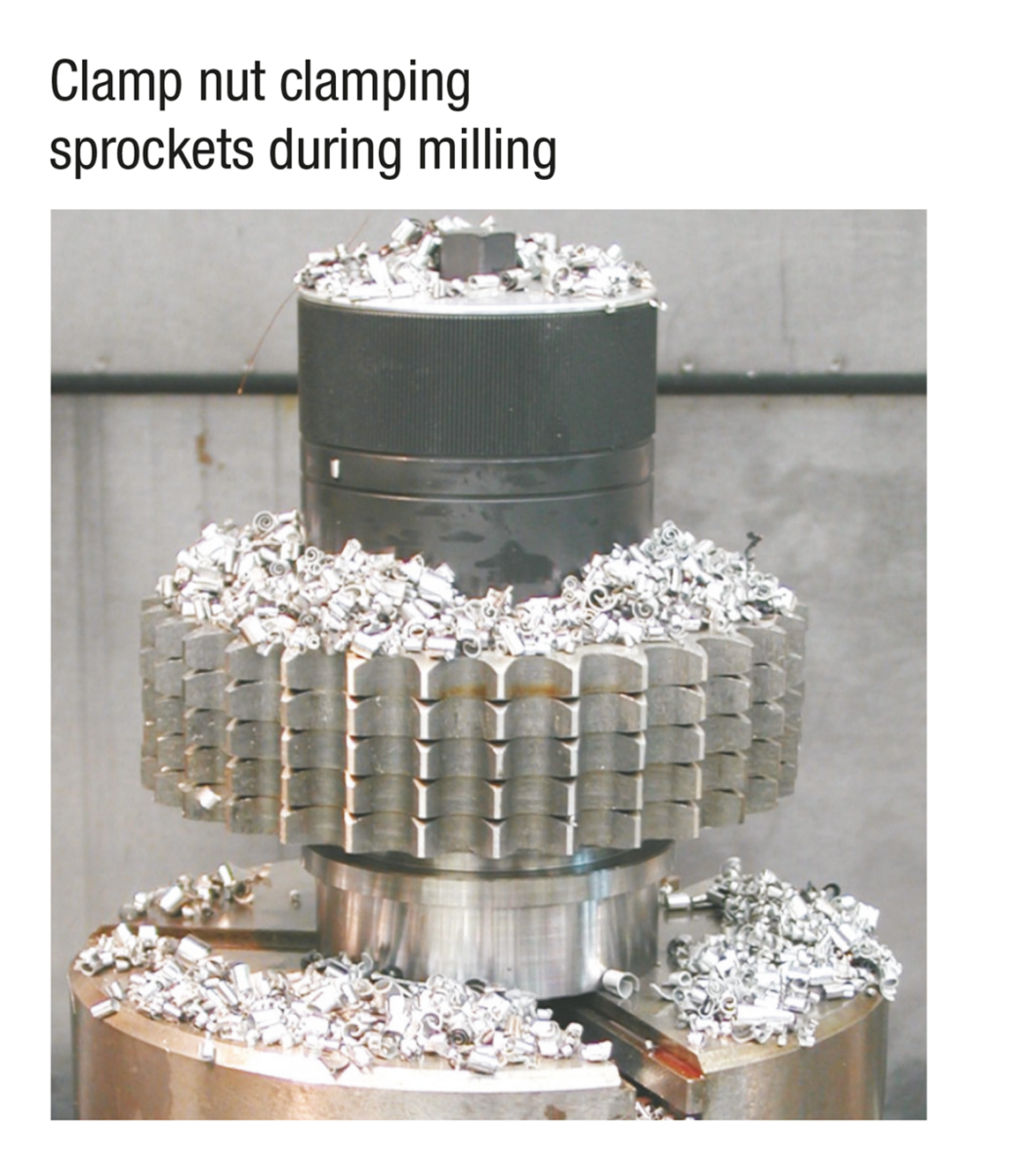 The main feature of the mechanical clamp nut is an integrated planetary gear to simplify the manual clamping torque. After manually adjusting the clamp nut up to the workpiece the drive pinion of the planetary gear is engaged by turning the hexagonal spigot “SW1” to the right. The clamp nut is self-locking in every position. The clamp nut can be used for many clamping tasks throughout the machining field, especially for clamping parts in presses and punches.