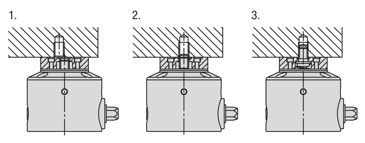 3. When the drive element is actuated, the clamping screw rotates into the tapped hole of the workpiece and clamps it.