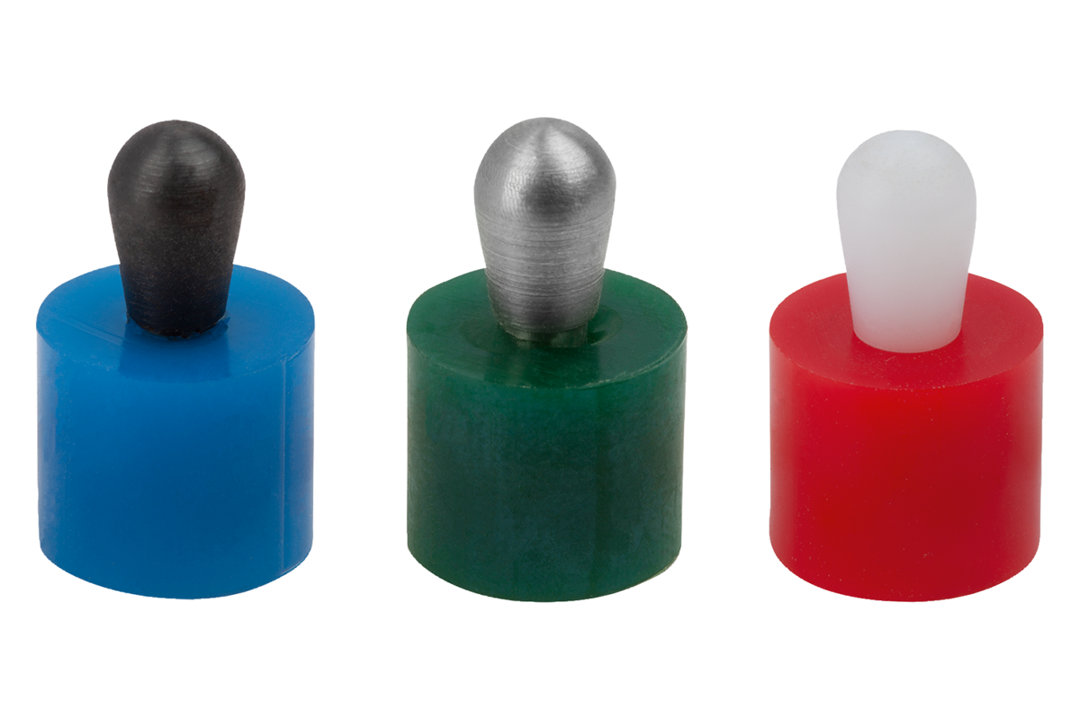 Lateral spring plungers with plastic spring, stainless steel thrust pin