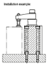 The magnetic piston is prepared for electronic end-position feedback. The swing clamp must not be constrained in its swinging action. F1 = at 6 bar max. permitted operating pressure.