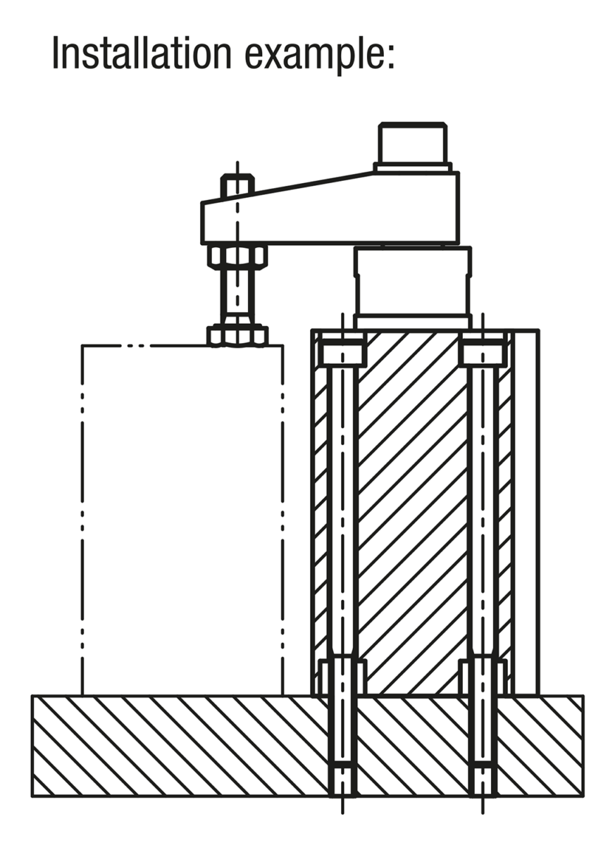 The total travel of the swing clamp consists of the swing travel and the clamping travel. At the start of the clamping process, the clamping arm performs a 90° swing movement. When this movement is completed, the linear down clamping travel is carried out. The workpiece must only be clamped using the clamping travel.