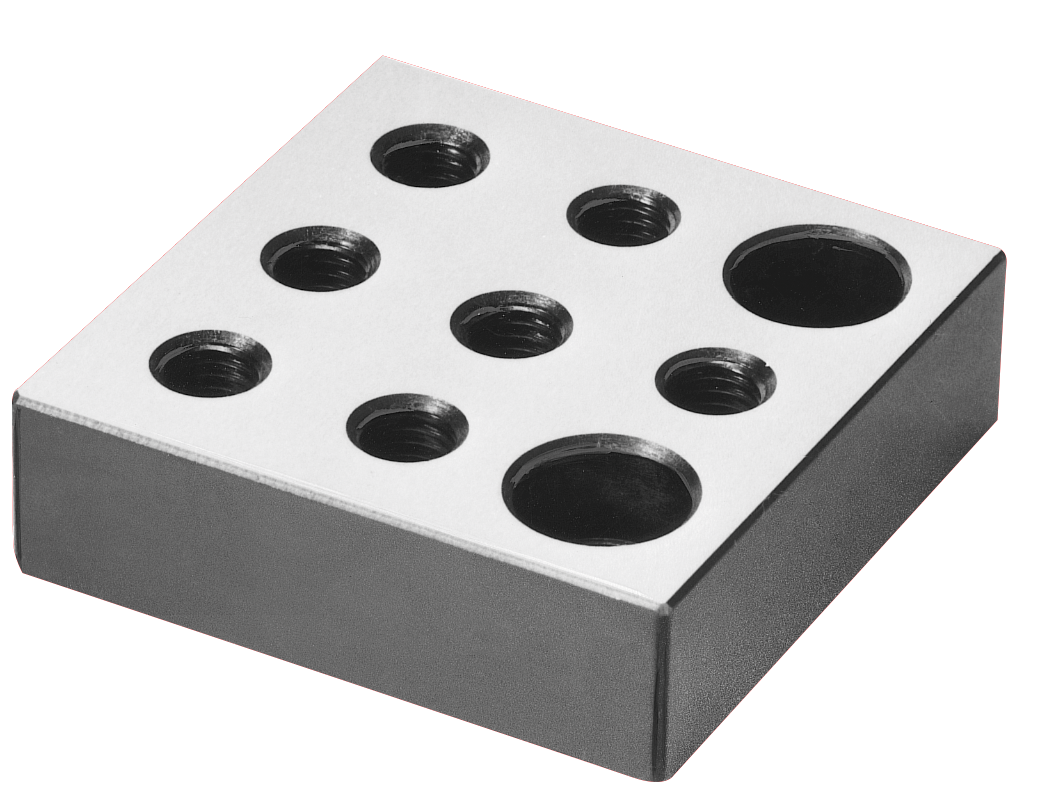 Az alátét blokkok egy bizonyos támasztási magasság elérésére szolgálnak. Az alátét blokkokban található kiegészítő menetes furatok további készülékelem felfogására szolgálnak.