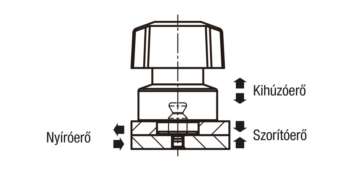 Forgatógomb, termoplasztikus műanyag PA (poliamid) vagy nemesacél forgógombbal.