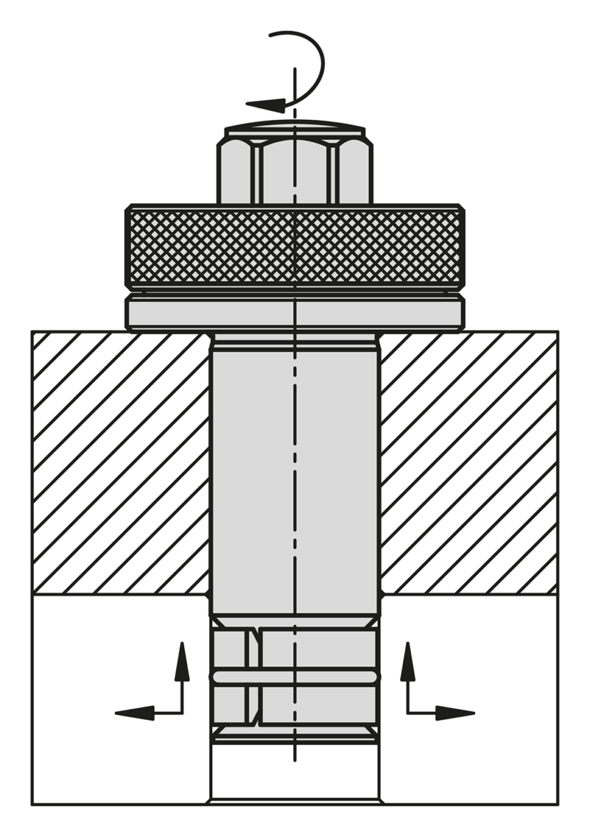 A pozicionáló henger segítségével a munkadarab egyszerűen rögzíthető és központosítható egy furatban.