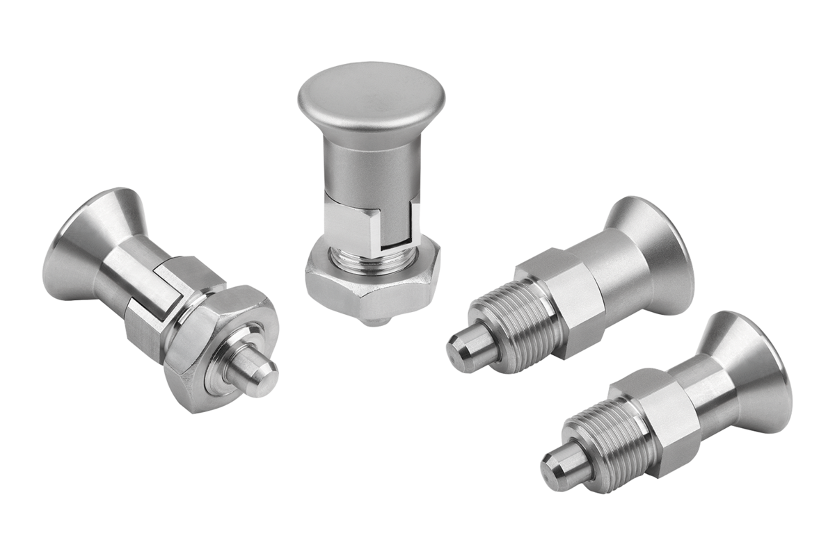 Rögzítőcsapok, nemesacél, rövid kivitel, gomba alakú fogantyúval, reteszhorony és ellenanya nélkül