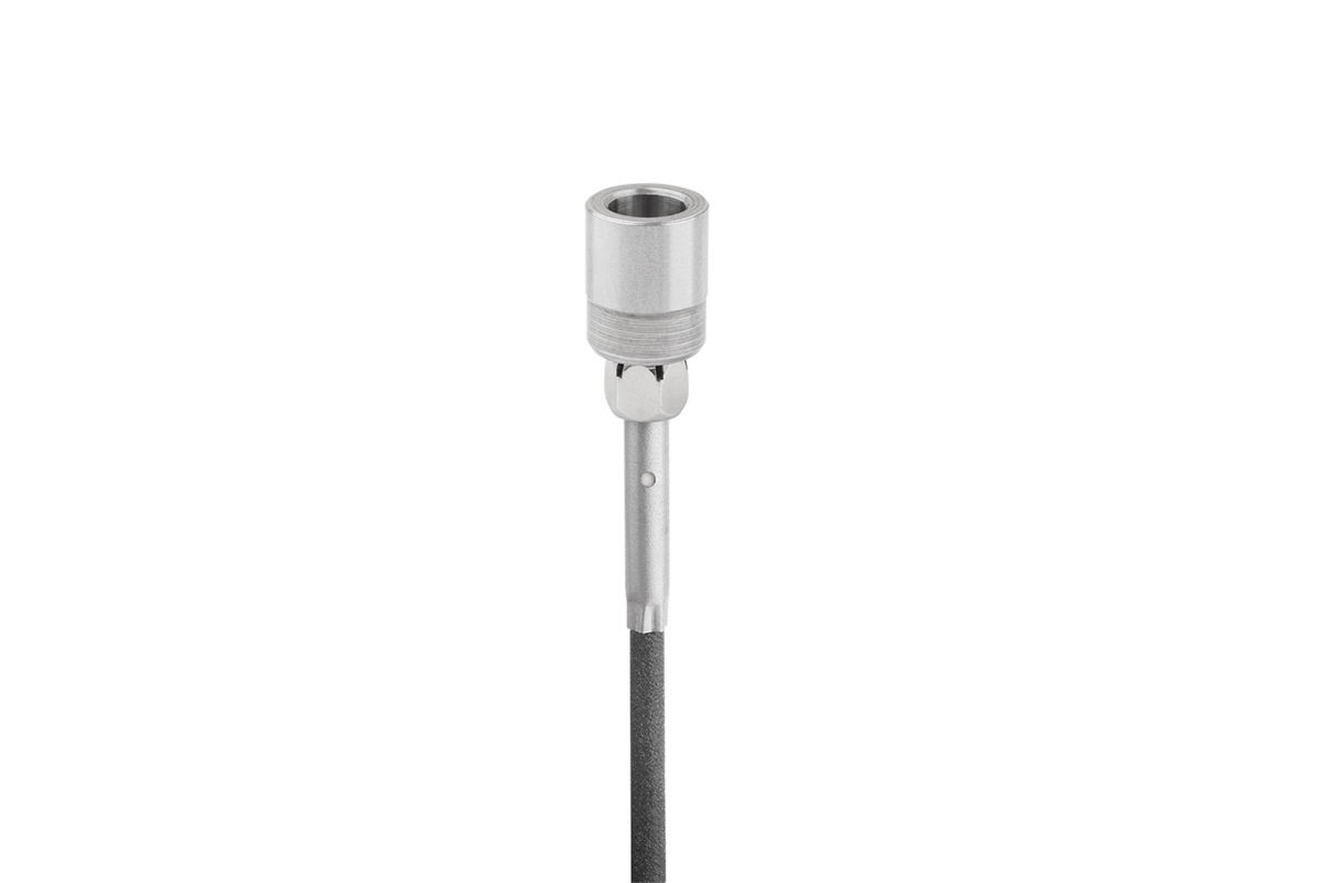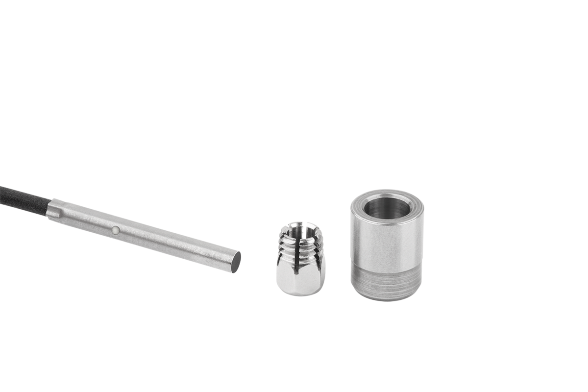 Az érzékelőt a szorítóanyával rögzítik a perselyhez és axiálisan állítják be. Végül az érzékelő rögzítése a szorítóanya meghúzásával történik.