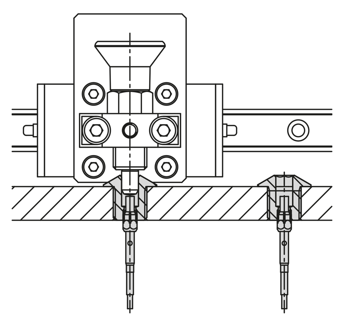 A pozicionáló perselyek rögzítési pontot képeznek a csap alakú működtető és reteszelő elemek számára, amelyekbe biztonságosan és pontosan reteszelhetők.