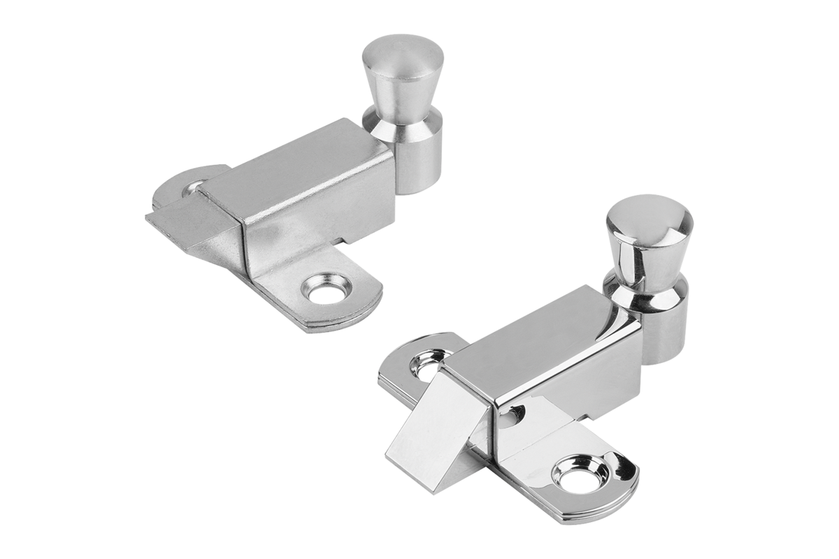 A visszatérő rugóval ellátott reteszeket egyszerűen fel lehet csavarozni az ajtókra, a fedelekre és a burkolatokra. A reteszek két különböző változatban kaphatók, felfelé vagy lefelé hajlítva. A ferde felület lehetővé teszi az alkalmazás bezárását vagy kinyitását a retesz megnyomása nélkül. Az integrált rugónak köszönhetően a retesz mindig visszatér a kiindulási helyzetbe.