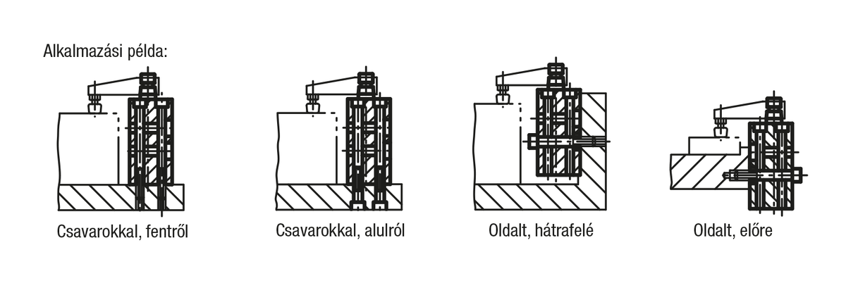 Lengőszorítók ott használhatók, ahol kisebb szorítóerők is elegendőek vagy ahol a leszorítási pontnak szabadon kell maradnia a munkadarab behelyezéséhez és kivételéhez. A ház blokk alakja univerzális rögzítési lehetőségeket kínál.