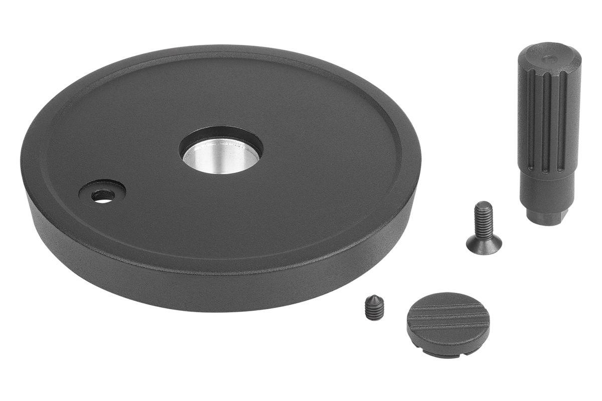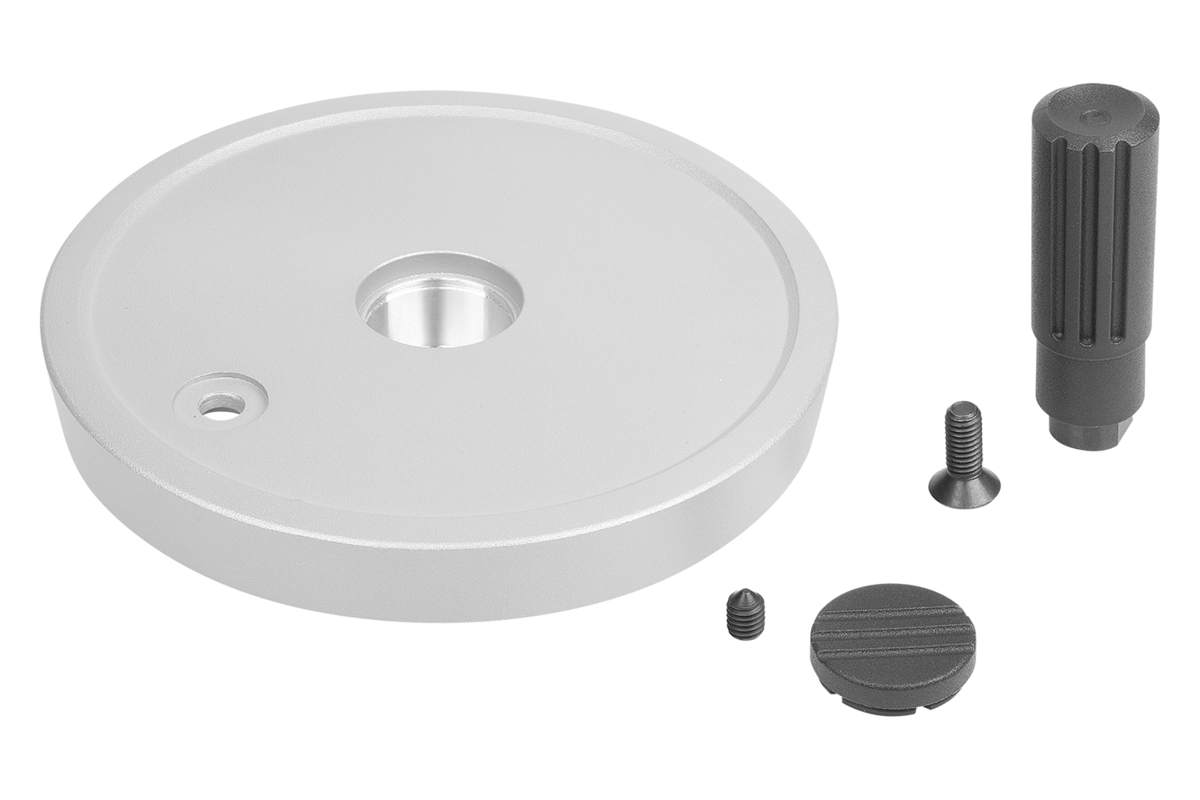 Az agy burkolata és a forgatható hengeres markolatok mellékelve. Szereléshez a markolat tengelyét a befogófuratba kell becsavarni.