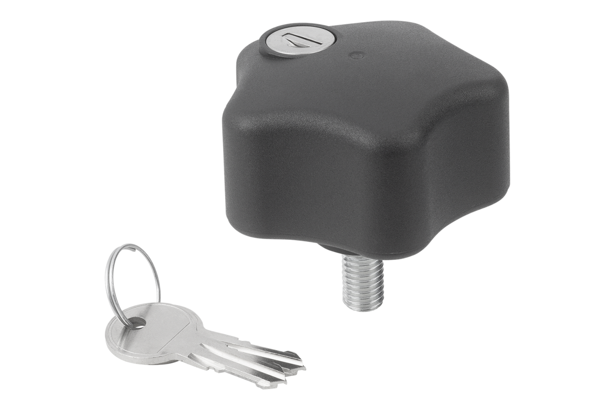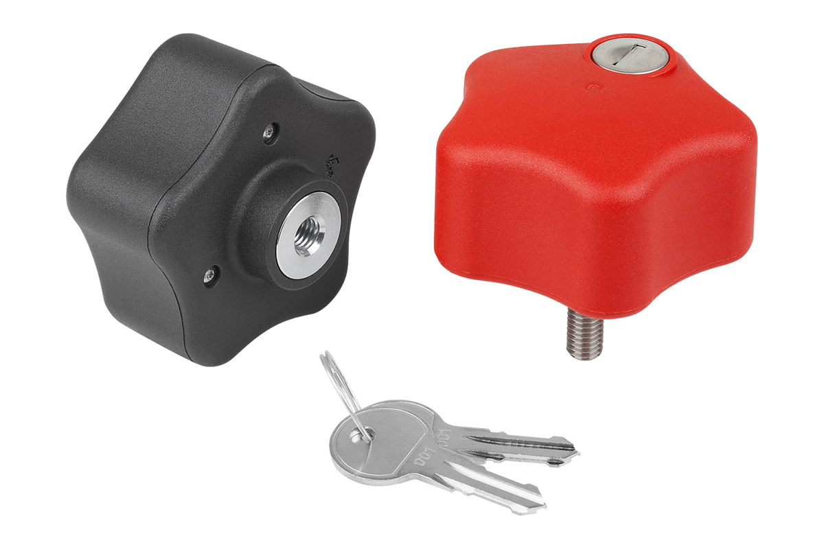 Műanyag ötágú csillagfogantyú külső menettel, zárható